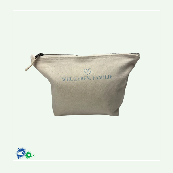 Unser Kosmetiktäschchen wurde in unserer Siebdruck-Manufaktur von Hand bedruckt.